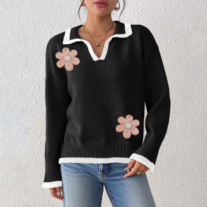 - Product Name: Floral embroidery beaded sweater fall/winter casual fashionable sweater collar with contrasting color patchwork design sweater