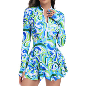 Home>Women Swimwear>One-piece>Multi-Color Printed Long-Sleeved One-Piece Swimsuit Fashionable and Sporty Form-Fitting Swimsuit