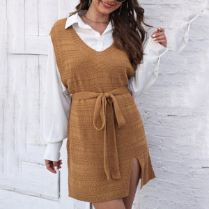- Product Name: Winter and autumn style strap-front slit cardigan sweater woven jacket-style sweater loose and casual sweater